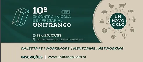 A Unifrango promove agora de 18 a 20 de Julho em Maringá o 10º ENCONTRO AVÍCOLA E EMPRESARIAL UNIFRANGO, com palestras, workshops, mentoring e networking que irão compor a programação, especialmente voltada ao segmento agro na cadeia produtiva de proteína animal.