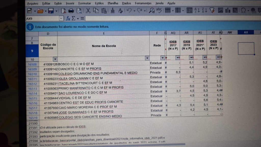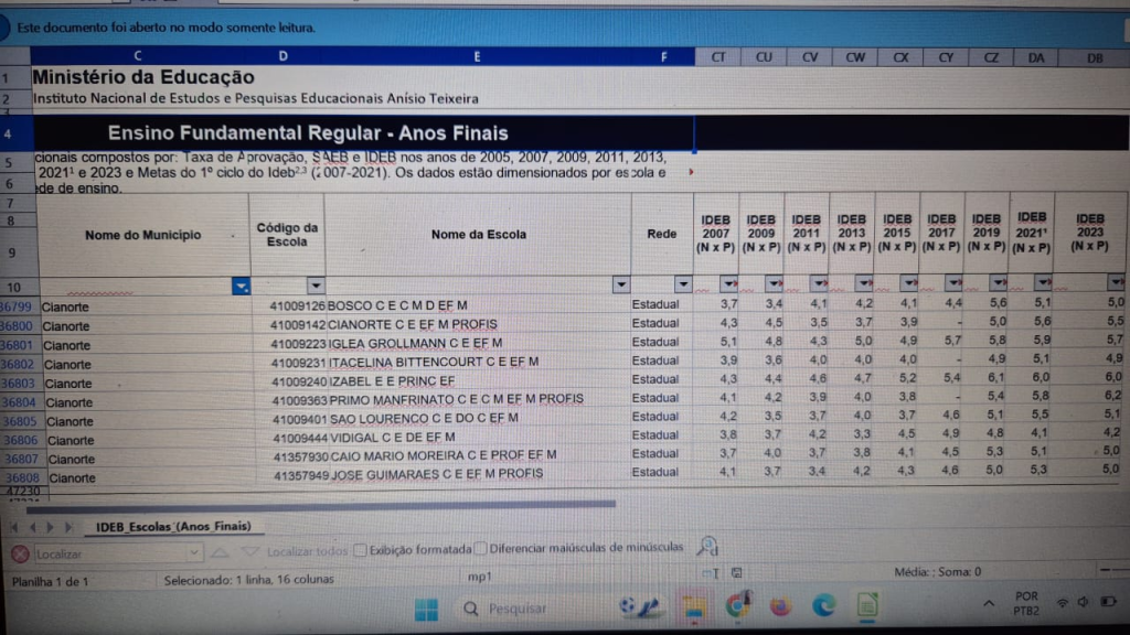 Leia também nossa matéria de Dez/2022 onde falamos do IDEB de 2021 para Cianorte e Região.