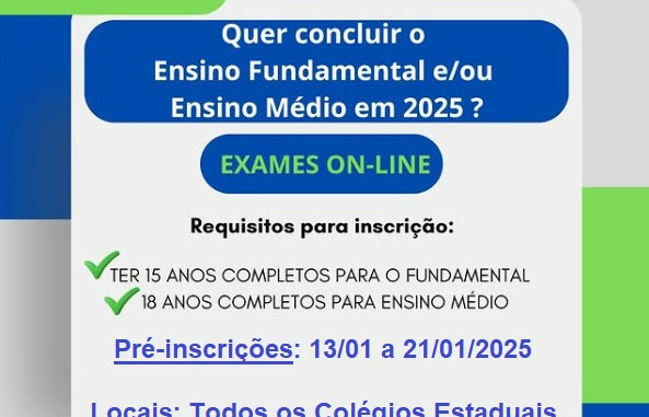 O Exame Estadual de Educação de Jovens e Adultos (EJA) de 2025 do Estado do Paraná esta com inscricoes abertas.
