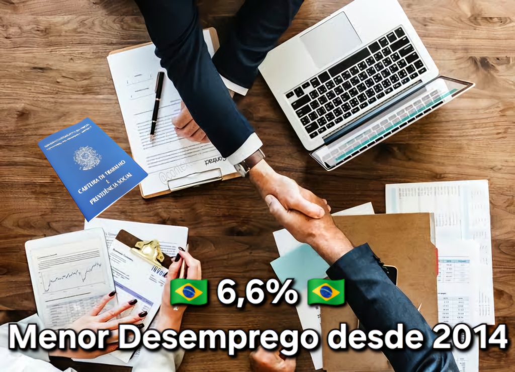 O desemprego no Brasil ficou em 6,6% em 2024, a menor taxa desde 2014, quando atingiu 7%.
