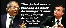 “É uma granada colocada pelo governo no bolso do inimigo” “Todo mundo está achando que, tão distraídos, abraçaram a gente, enrolaram com a gente. Nós já botamos a granada no bolso do inimigo – dois anos sem aumento de salário”, afirmou o ministro Paulo Guedes (Paulo Guedes, Ministro da Economia 22/04/2021 em reunião ministerial com Jair Bolsonaro)