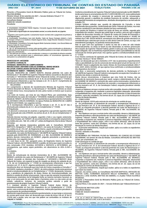 Entretanto, o município de Paranavaí reclamou no STF (autos de Reclamação n.º 48.538/PR no STF) e assim a corte suprema ratificou a lei federal 173/2020 e reformou a decisão do TCE-PR.