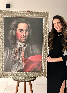 Após criar um perfil nas redes sociais para compartilhar seu trabalho, o retrato do compositor alemão do século 18 Johann Sebastian Bach, ela chamou a atenção de uma curadora de arte. Em seguida, Caroline recebeu a proposta de exibir a pintura no museu mais visitado do mundo.