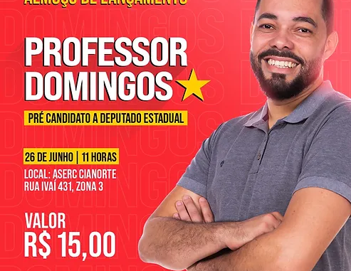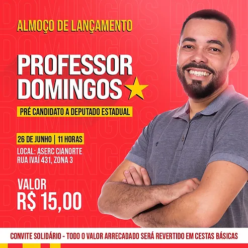 26 de jun. de 2022 – O professor Domingos Abel Cruz, candidato a prefeito de Cianorte pelo PT em 2020, agora oficializou sua Pré-Candidatura a Deputado Estadual do Paraná.