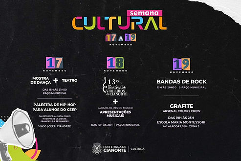 11 de nov. de 2022 – Após 24 horas de polêmicas envolvendo protestos e críticas “políticas“, Cianorte mantém a Semana Cultural de 17 a 19 de Novembro.